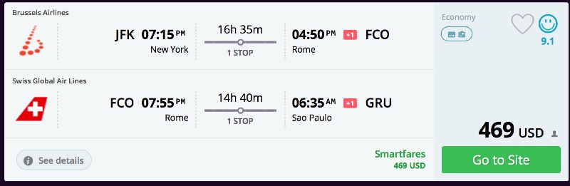 Amazing deal: USA to Europe and return to Brazil flight roundtrip as low as $469.