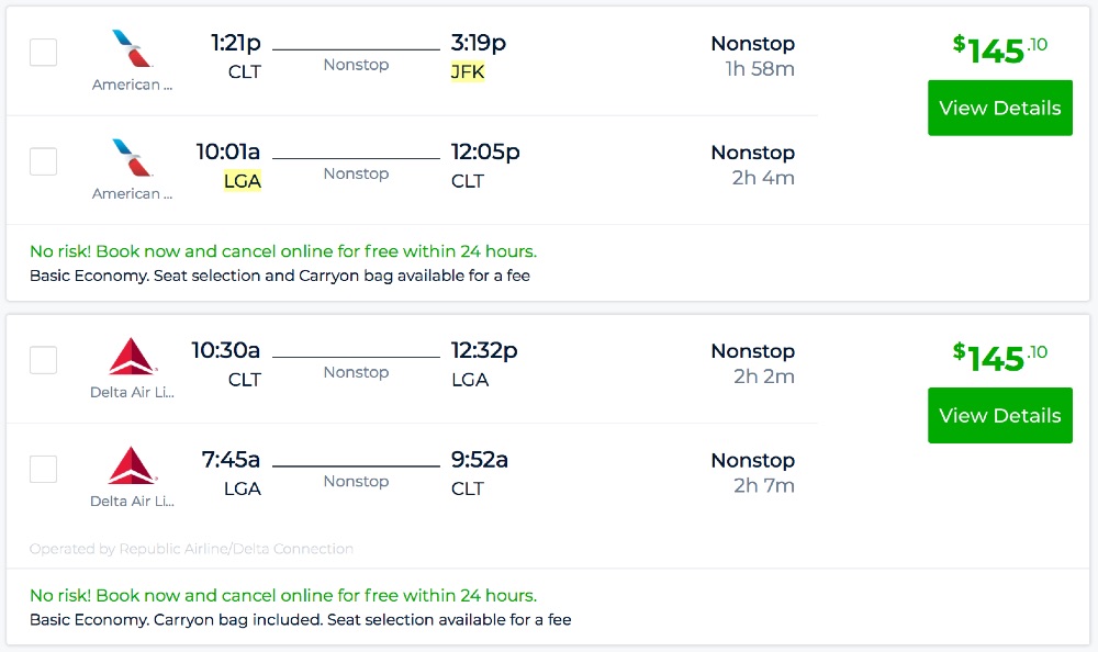 Amazing deal: Charlotte to New York and vice versa flight roundtrip as low as $145.
