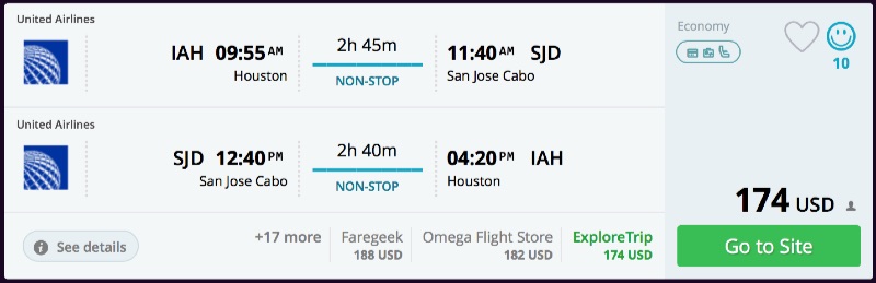 Amazing deal: Houston to San Jose Del Cabo, Mexico flights roundtrip as low as $174.