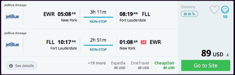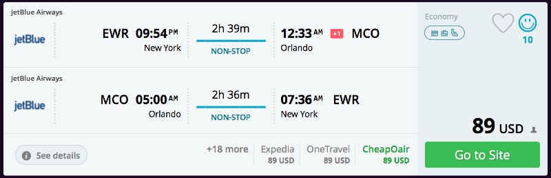 Amazing deal: Newark to Florida: Fort Lauderdale or Orlando and vice versa flight, roundtrip as low as $89.