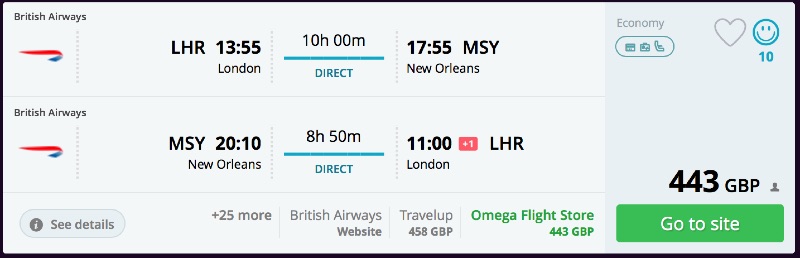 Amazing deal: London, UK to New Orleans flight, roundtrip as low as £443.