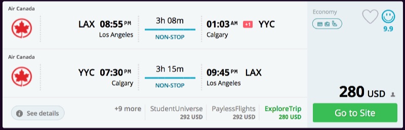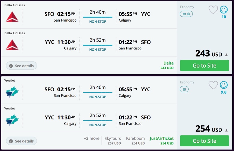 Amazing deal: Los Angeles or San Francisco to Calgary, Canada and vice versa flight roundtrip as low as $243/C$302.