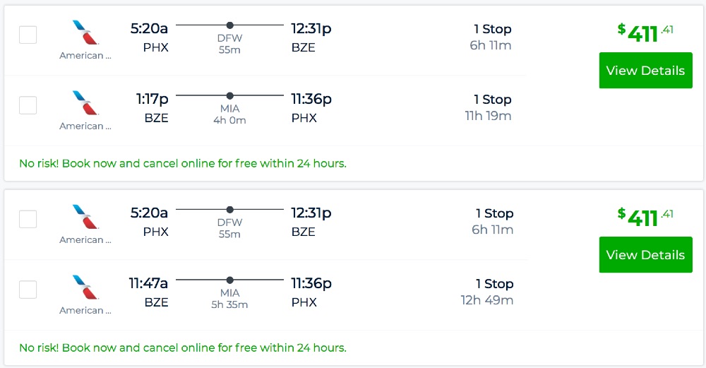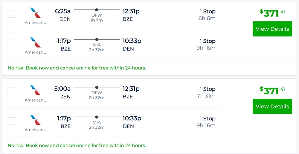 Denver or Phoenix to Belize from $371 R/T [AA]