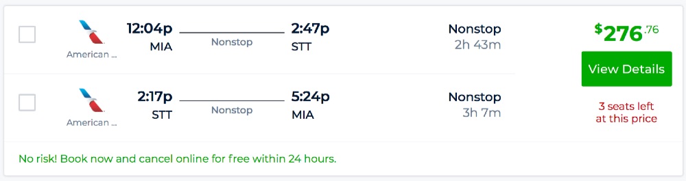 Amazing deal: Miami to U.S. Virgin Islands: St. Croix or St. Thomas flights roundtrip as low as $219.