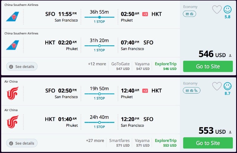 Amazing deal: Los Angeles, San Francisco, New York or Washington DC to Phuket, Thailand flight roundtrip as low as $509.