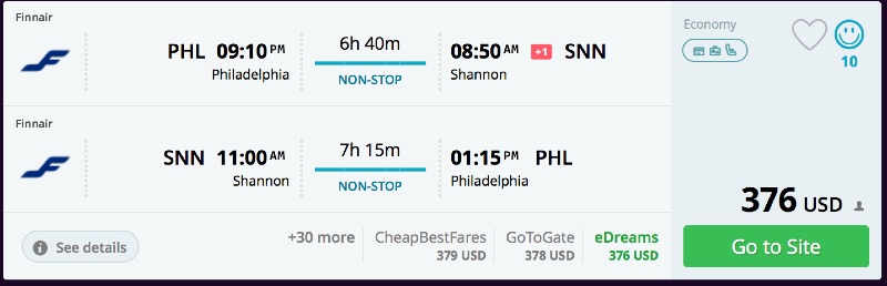 Amazing deal: Philadelphia to Shannon, Ireland flight roundtrip as low as $376.