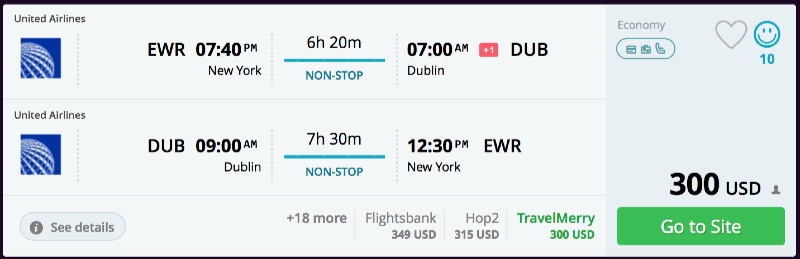 Amazing deal: Newark to Dublin, Ireland flight roundtrip as low as $300.