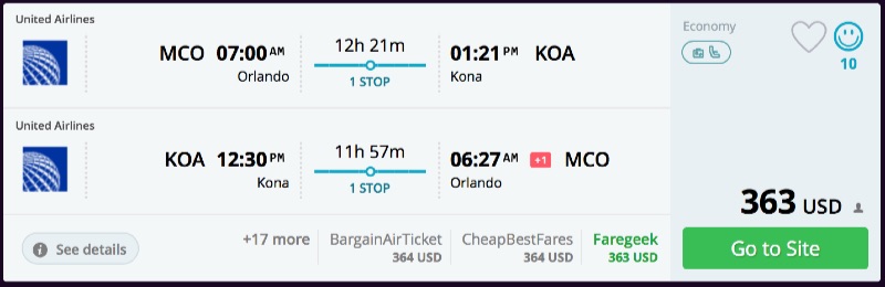 From MCO Kailua Kauai PRICELINE