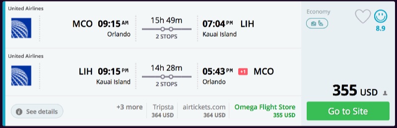 Amazing deal: Orlando to Hawaii: Honolulu, Kailua, Kauai flights roundtrip as low as $355.