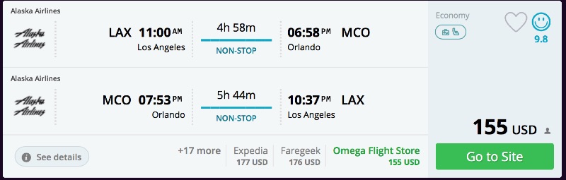 Amazing deal: Los Angeles to Orlando and vice versa flights roundtrip as low as $155.