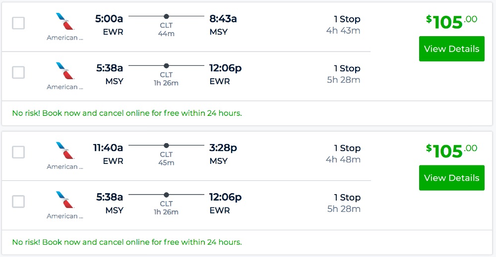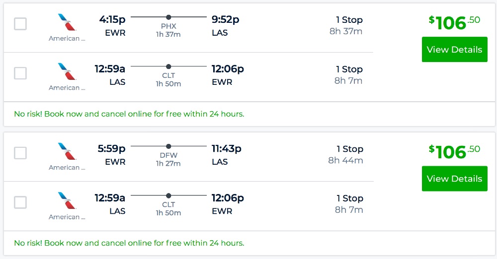 Amazing deal: Newark to New Orleans or Las Vegas and vice versa flight, roundtrip as low as $105.