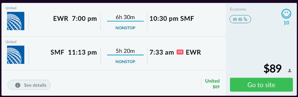 Amazing deal: Newark to Sacramento, CA and vice versa flight roundtrip as low as $89.