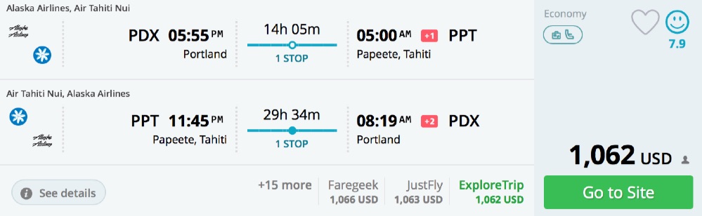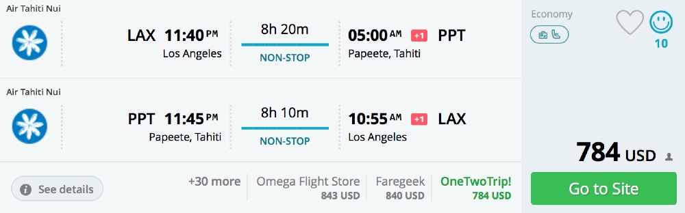 Amazing deal: LAX, SFO, PDX, SLC, DEN, IAH, EWR, WAS, BOS, DFW to French Polynesia: Tahiti flight roundtrip as low as $784.