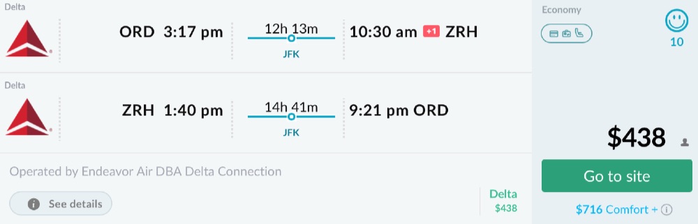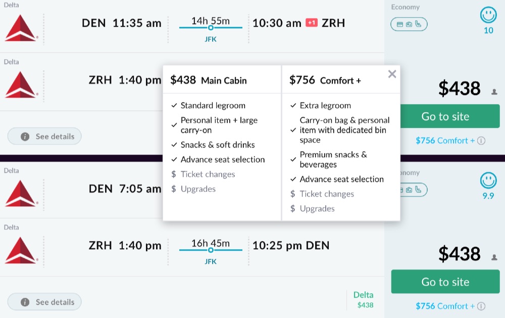 Some destinations have pretty amazing Premium Economy price point: ex. Denver to Zurich for $756 R/T in Delta’s Comfort+.