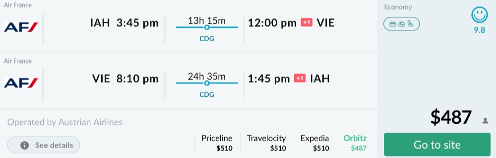 IAH to Vienna PRICELINE FLIGHTHUB
