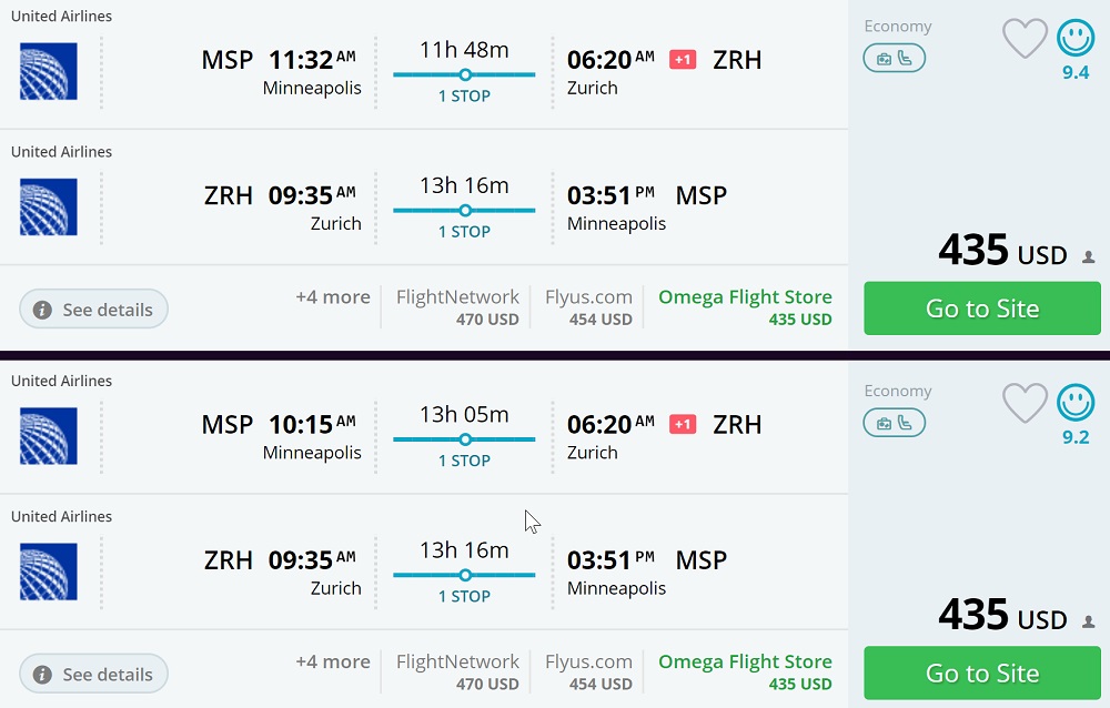 Amazing deal from Minneapolis to Zurich, Switzerland flights roundtrip as low as $435.