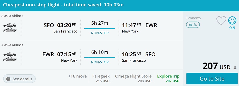 Amazing deal: San Francisco to New York and vice versa flights roundtrip as low as $207 and vice versa.