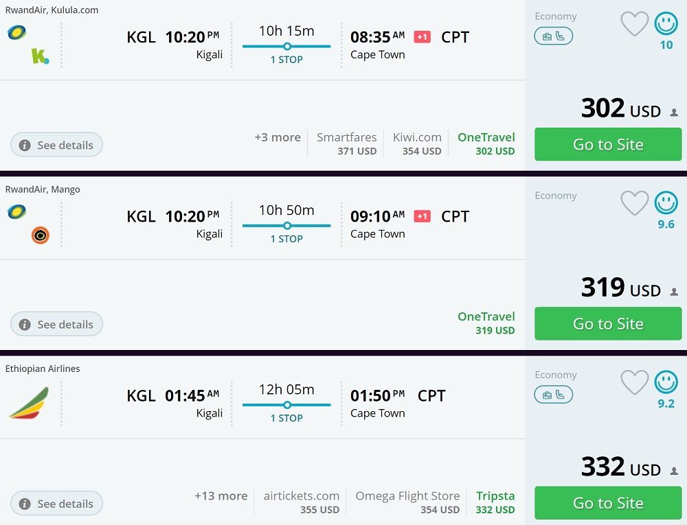Kigali, Rwanda to Cape Town, South Africa for $302