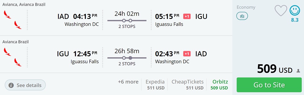Washington DC to Iguazu Falls, Brazil for $500 R/T [Avianca]
