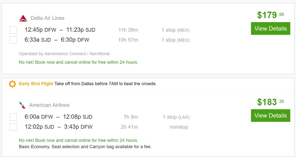 Houston (nonstop) or Dallas to San Jose Del Cabo, Mexico from $169 R/T