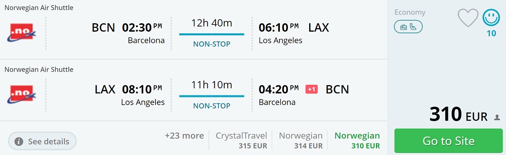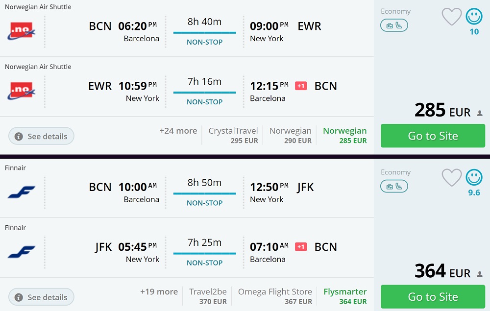 Amazing deal: Barcelona, Spain to New York or Los Angles, USA flight roundtrip as low as €285.