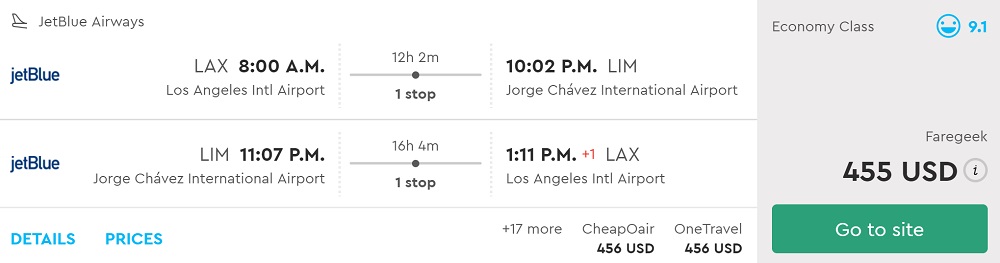 Los Angeles or Newark to Lima, Peru for $455 R/T [jetBlue]