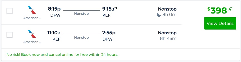 Dallas to Reykjavik, Iceland for $398 R/T nonstop [AA]