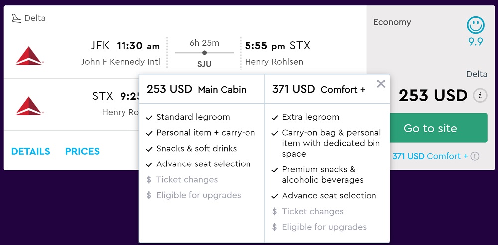 New York to U.S. Virgin Islands: St. Croix for $253 R/T ($371 R/T Comfort+) [Delta]