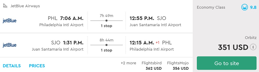 From PHL to Costa Rica
