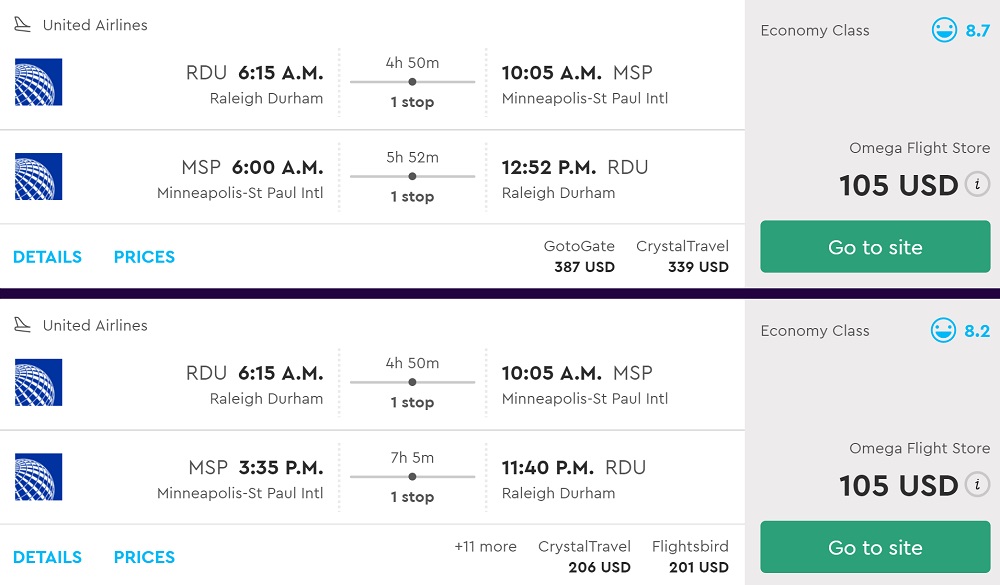 Amazing deal: Raleigh to Minneapolis and vice versa flights roundtrip as low as $105.