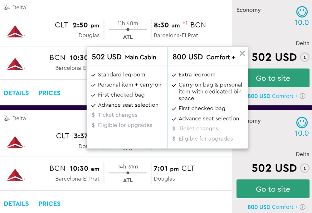 From CLT to BCN Momondo Priceline Flighthub