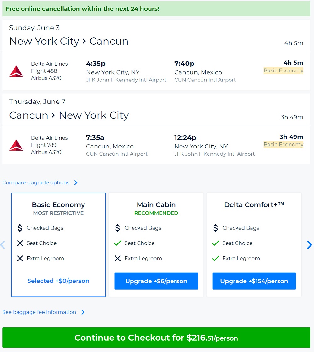 You can also opt-in for Delta’s Comfort+ for $154 extra per person.