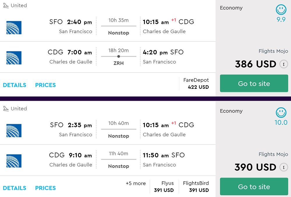 SFO to Paris