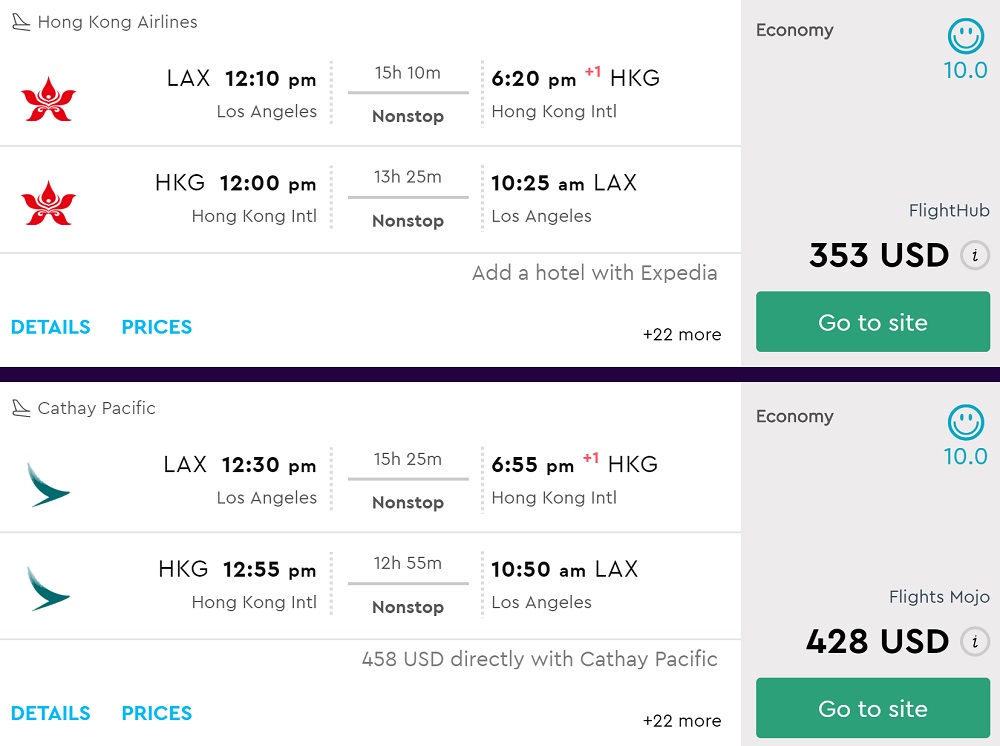 From SFO From LAX PRICELINE FLIGHTHUB