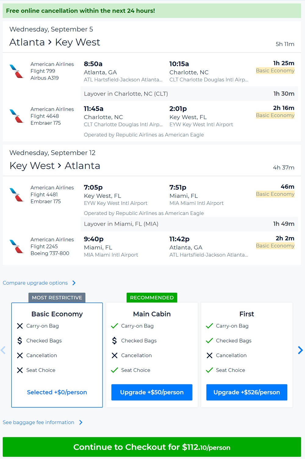 AA’s Basic Economy fare restrictions apply, including: