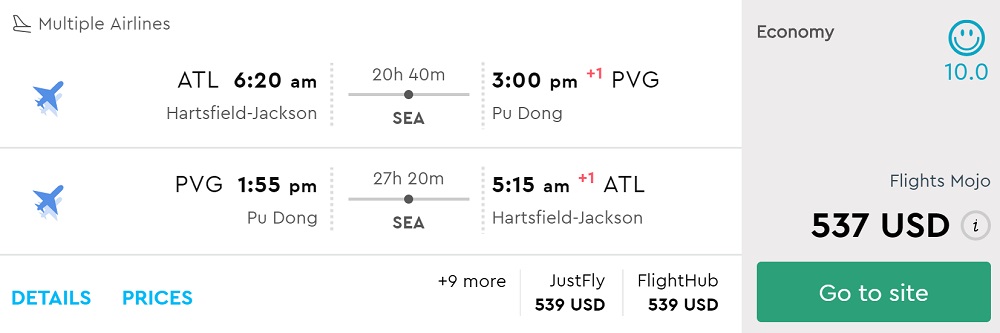 Amazing deal: Atlanta to Beijing or Shanghai, China flight roundtrip as low as $534.