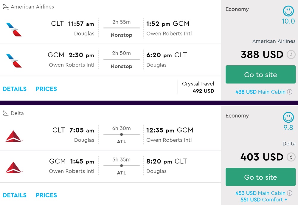 Amazing deal: Charlotte to Aruba or Cayman islands flights roundtrip under $388.