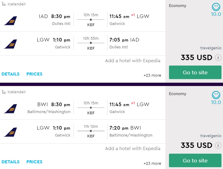From IAD/BWI From BOS PRICELINE FLIGHTHUB