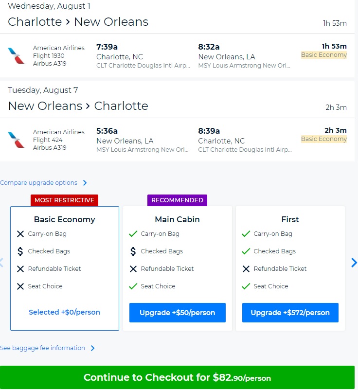 AA’s Basic Economy fare restrictions apply, including: