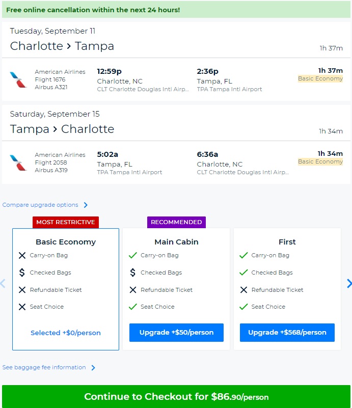 AA’s Basic Economy fare restrictions apply, including: