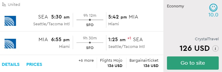 Amazing deal: Seattle to Miami and vice versa flight round-trip as low as $126.