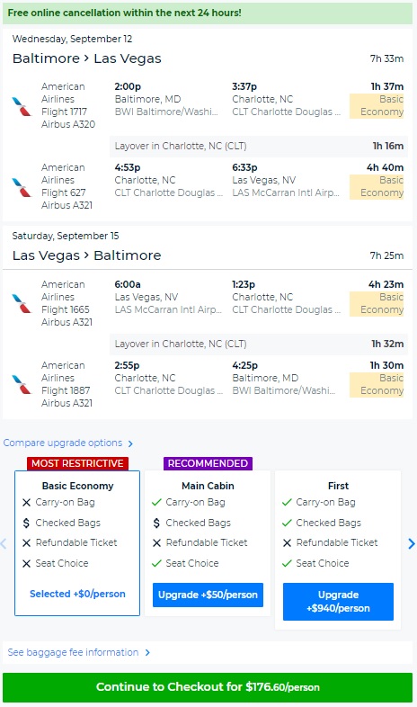 Baltimore to Las Vegas and vice versa from $176 R/T [AA]