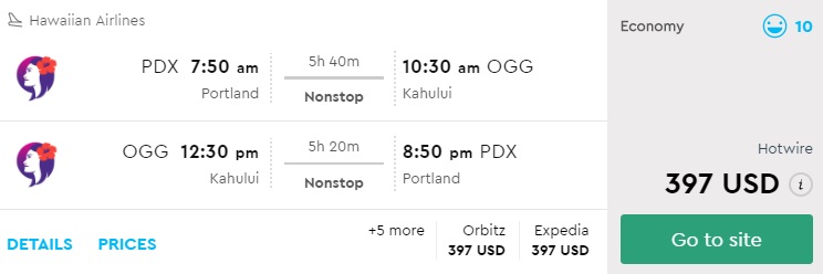 From PDX to Maui (Kahului)