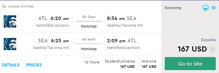 Amazing deal: Atlanta to Seattle and vice versa flight round-trip as low as $167.