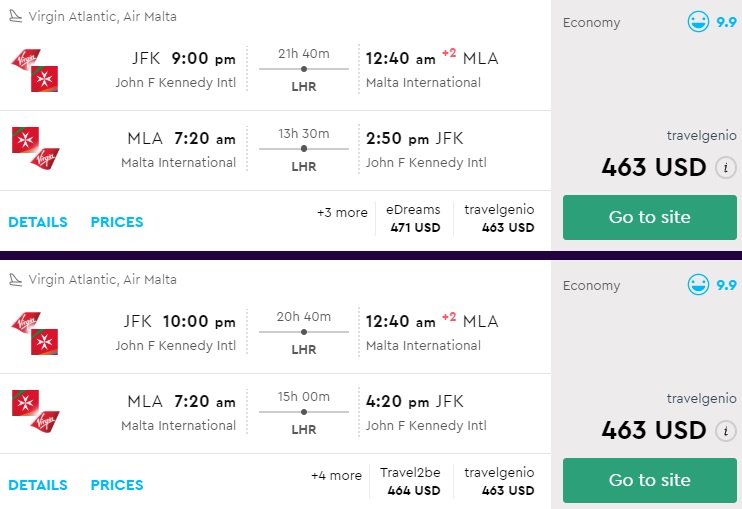 New York, San Francisco or Los Angeles to Malta from $463 R/T [Virgin Atlantic]