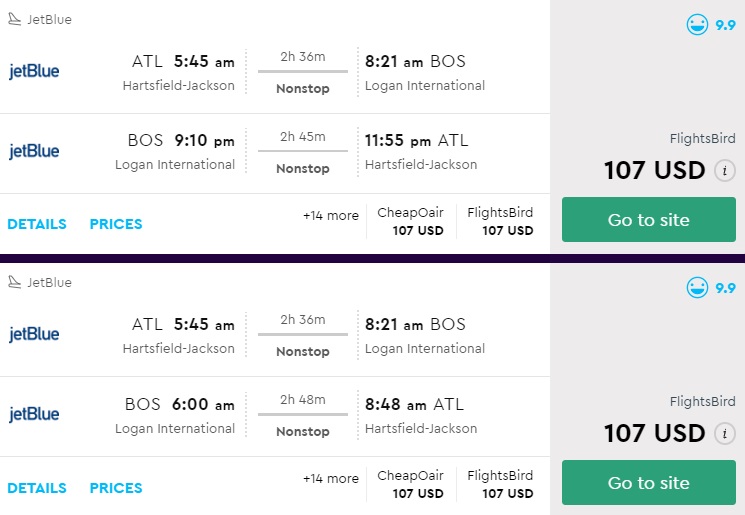 Amazing deal: Atlanta to Boston and vice versa flight round-trip as low as $107.