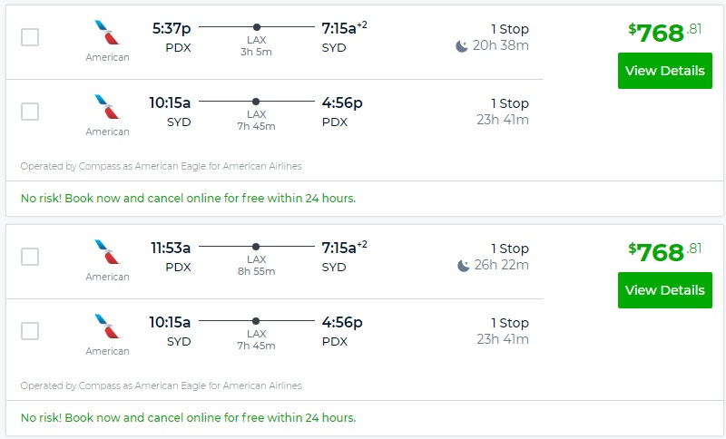 Atlanta, Miami, Detroit Minneapolis, Portland, Seattle to Australia: Sydney flights round-trip as low as $709.