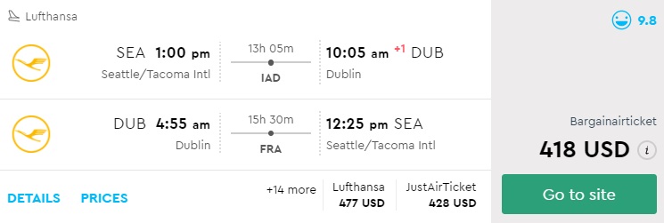Amazing deal: Portland or Seattle to Dublin, Ireland flight round-trip as low as $418.