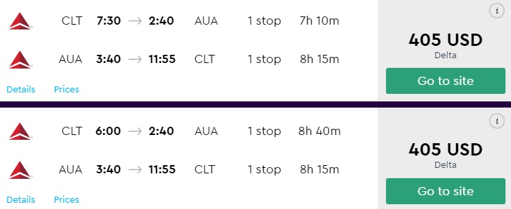 Charlotte to Aruba for $405 R/T [Delta]