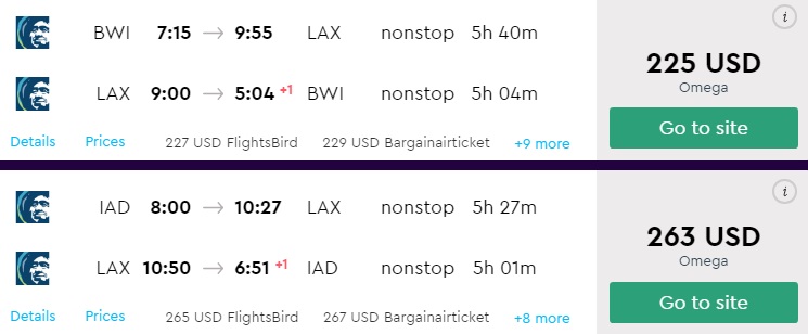Amazing deal: Washington DC or Baltimore to Los Angeles and vice versa flights round-trip as low as $225.